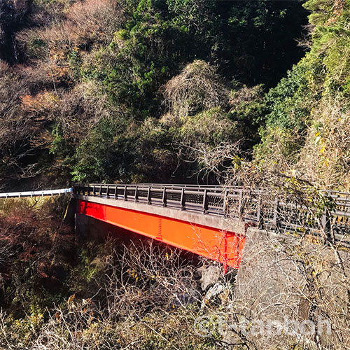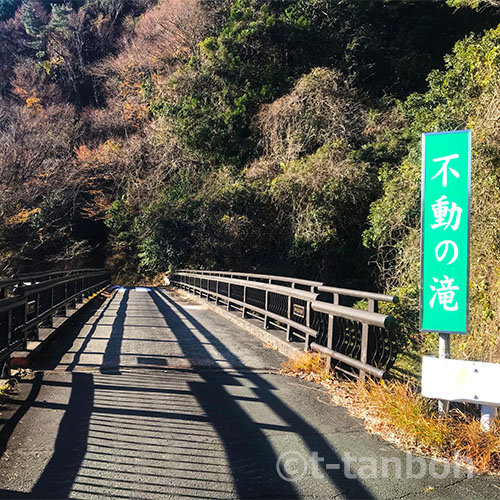国道152号線から約3~4kmほど山道を登ると不動沢の中腹に架かる不動橋に辿り着きます。