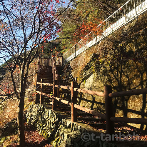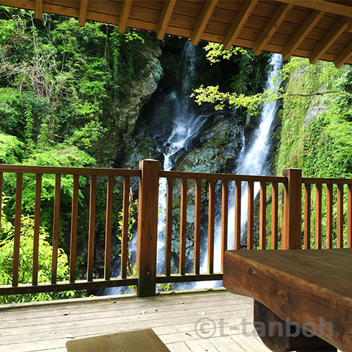 不動橋の脇には駐車場が完備され、不動橋から滝壷までは遊歩道が整備され、遊歩道の終点には四阿(あずまや)があります。